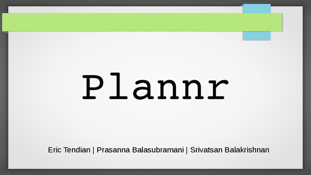 Plannr Eric Tendian | Prasanna Balasubramani | Srivatsan Balakrishnan