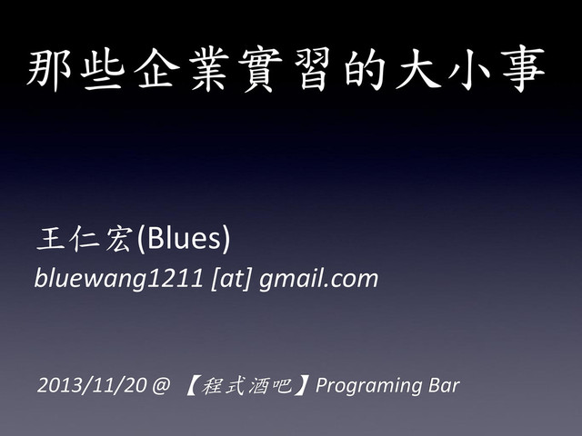 那些企業實習的大小事 王仁宏(Blues) bluewang1211 [at] gmail.com 2013/11/20 @ 【程式酒吧】Programing Bar