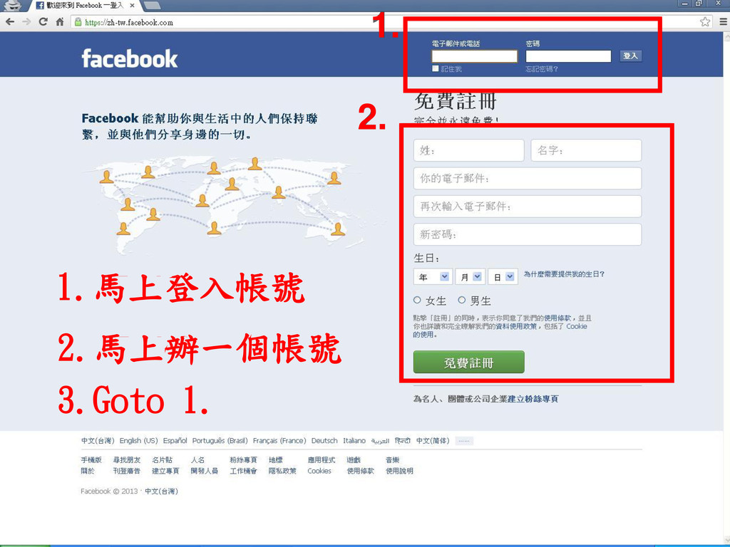 1. 2. 1.馬上登入帳號 2.馬上辦一個帳號 3.Goto 1.