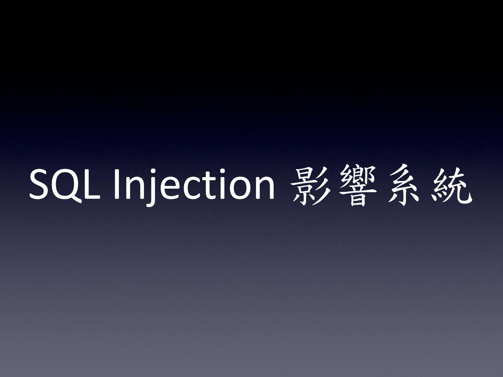 Agenda 1.認識SQL Injection SQL Injection 原理 影響的系統 2.駭客看得跟你不一樣 SQL Injection