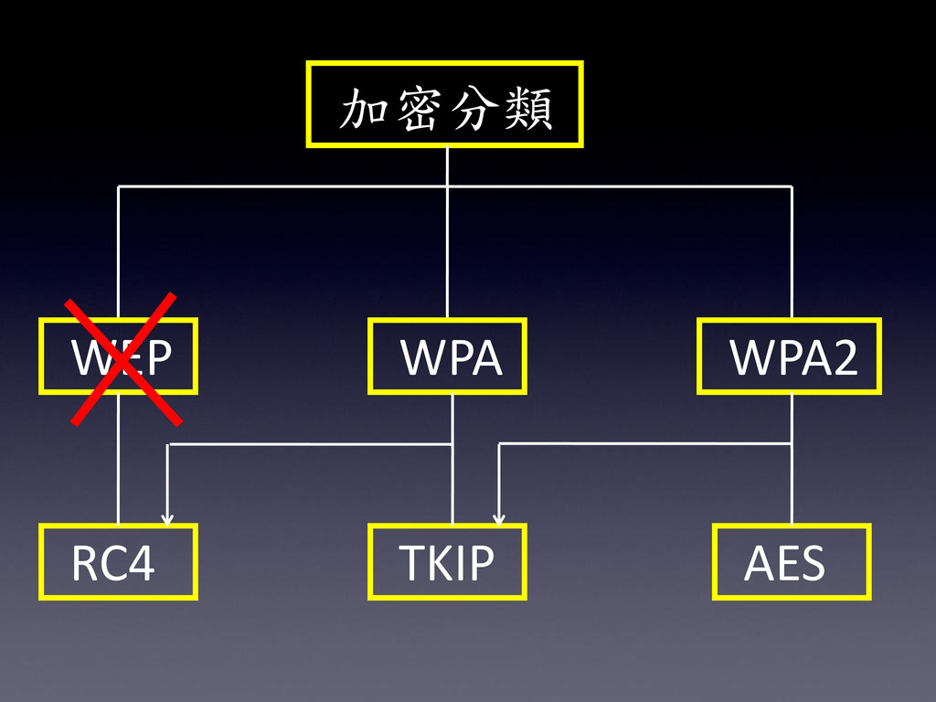 加密分類 WEP WPA WPA2 RC4 TKIP AES
