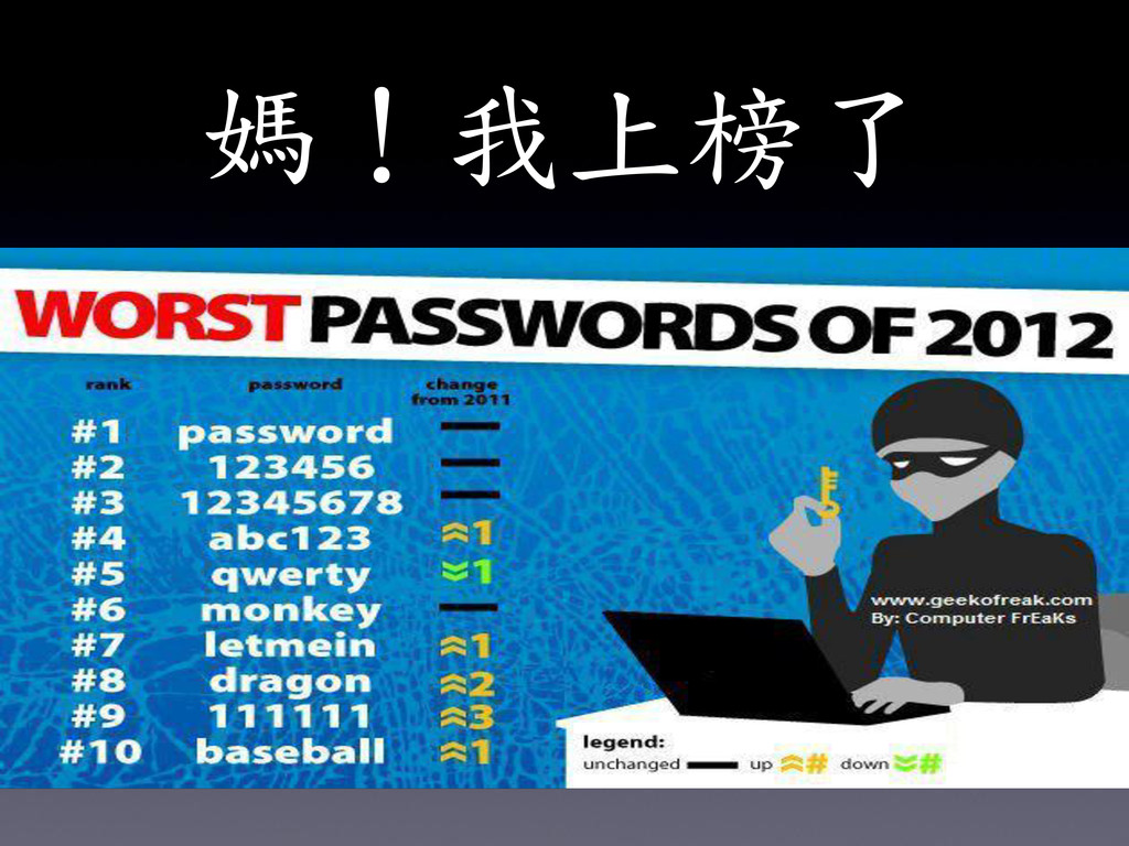 Conference2012台灣駭客年會 101年度資安系列競賽 對於資訊安全有高度興趣, 卻沒有相關天份的一個人。