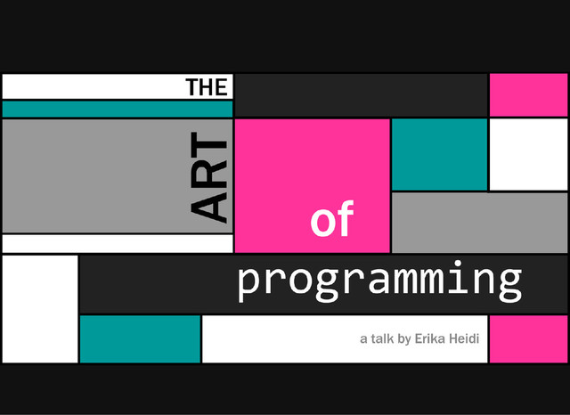 PDF version of my slides for the talk "The Art of Programming" as presented at PHP Southcoast 2015. The live (and much cooler) version is available here: http://slides.erikaheidi.com/taop/#/