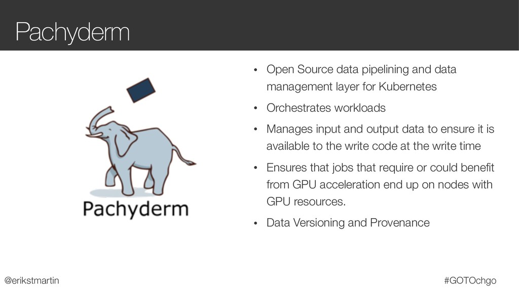 management layer for Kubernetes • Orchestrates workloads • Manages input and output data to ensure it is available to the write code at the write time • Ensures that jobs that require or could benefit from GPU acceleration end up on nodes with GPU resources. • Data Versioning and Provenance