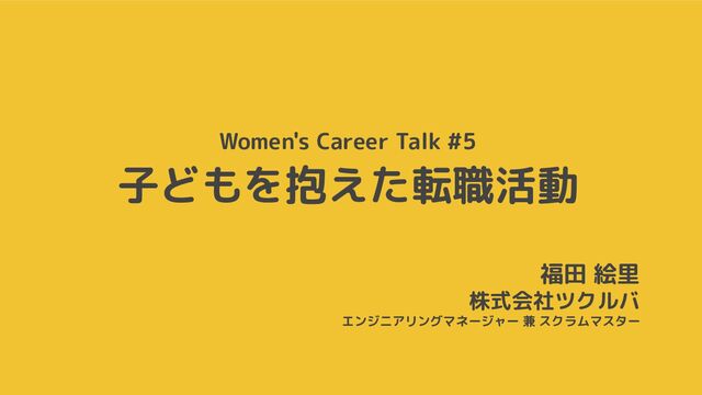 福田 絵里 株式会社ツクルバ エンジニアリングマネージャー 兼 スクラムマスター 子どもを抱えた転職活動 Women's Career Talk