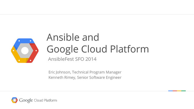 Covers Google Cloud Platform and live demo of Ansible's Google Cloud (gc*) modules. Also a demo on how to wire up other Google Cloud services to create a Continuous Deployment architecture using ansible locally.