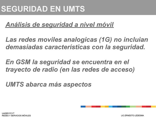 necesitan claves, estas claves son esencial para el cifrado. Una SA (asociación de seguridad) además de las claves contiene información sobre el algoritmo utilizado, periodo de validez y un SQN para la protección contra ataques de retransmisión. La SA debe negociarse, una para cada direccion. La negociación tiene lugar en modo seguro mediante el protocolo IKE UADER FCYT REDES Y SERVICIOS MÓVILES LIC.ERNESTO LEDESMA
