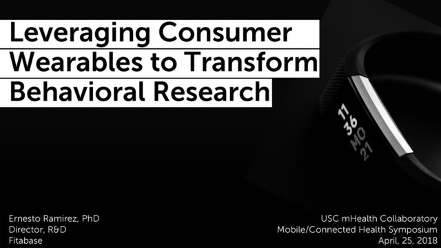 Ramirez, PhD Director, R&D Fitabase ` Leveraging Consumer Wearables to Transform Behavioral Research