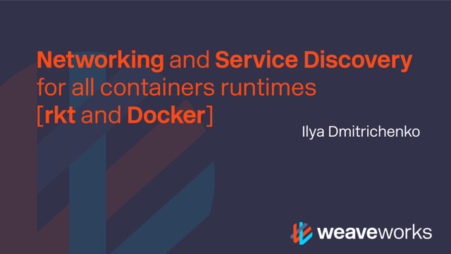 I need a container network? • why to use Weave Net? • How Weave Net works • comparison to other solutions • Demo (rkt & Docker on GCE + Docker for Mac)