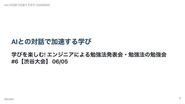 AIとの対話で加速する学び 学びを楽しむ! エンジニアによる勉強法発表会・勉強法の勉強会 #6【渋谷大会】 06/05 AIとの対話で加速する学び 2025/06/05 @erukiti 1