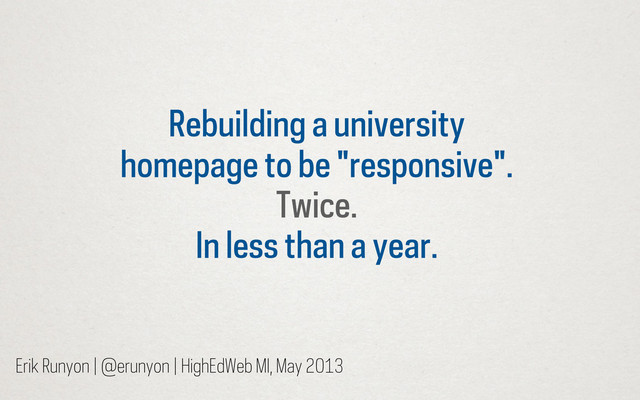 UA and narrow screen (to simulate mobile) js: 12 files/216 KB css: 6 files/99 KB images: 30 files/1 MB (72% of page size) Sites used to generate these stats: http://bit.ly/highered-rwd
