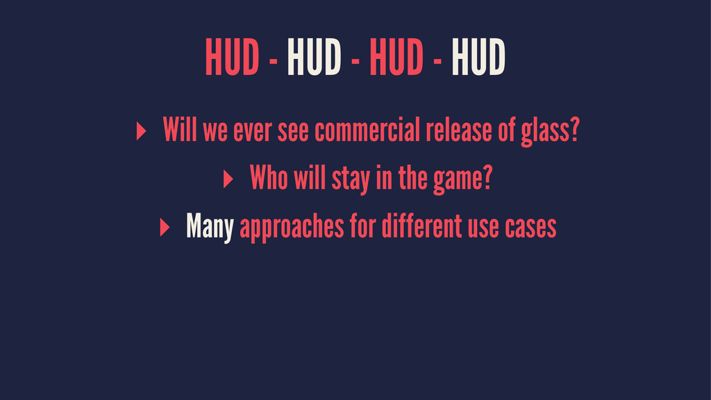 ever see commercial release of glass? ▸ Who will stay in the game? ▸ Many approaches for different use cases