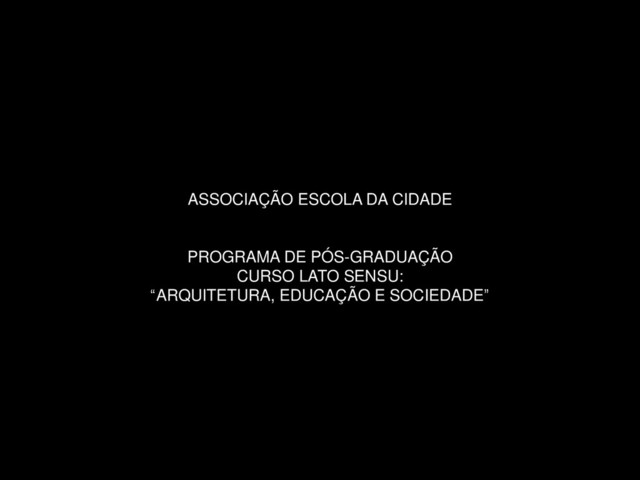 ASSOCIAÇÃO ESCOLA DA CIDADE PROGRAMA DE PÓS-GRADUAÇÃO CURSO LATO SENSU: