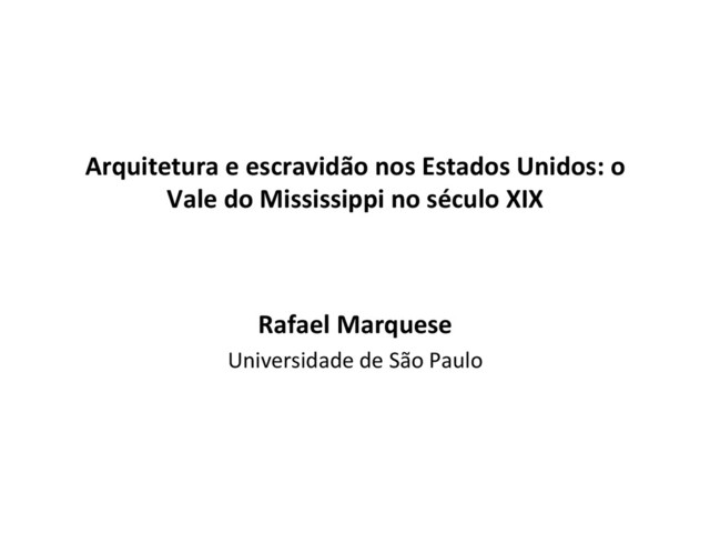 na Paisagem Americana: Brasil, Cuba e Estados Unidos no século XIX Financiamento: Ge:y Founda<on. Equipe: Reinaldo Funes, Rafel Marquese, Dale Tomich, Carlos Venegas Desenho do livro em preparação: Capítulo 1: A formação das novas zonas escravistas Capitulo 2: Paisagens de plantaAon Capitulo 3: A arquitetura da produção Capitulo 4: A casa grande como microcosmo social