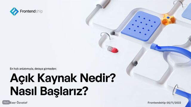 Yaklaşımı 04 Tanışma Açık Kaynak'ın Geliştiricilere Sundukları Benim kimim, nelerle ilgileniyorum? Açık kaynak nedir? Açık kaynak'ın dünyaya faydaları nelerdir? Açık kaynak'ın geliştiriciler olarak bize faydaları nelerdir? 05 Açık Kaynak Geliştirme Araçları 06 07 Lisanslar, Topluluk ve Dahası 08 Açık Kaynak Geliştirme Workshop Nasıl açık kaynak geliştirme yapılabilir? Hangi yazılımlar kullanarak açık kaynak geliştirme yapılır? Hangi tip lisanslar var? Daha fazla nereden öğrenebilirim? Kolları sıvama zamanı…