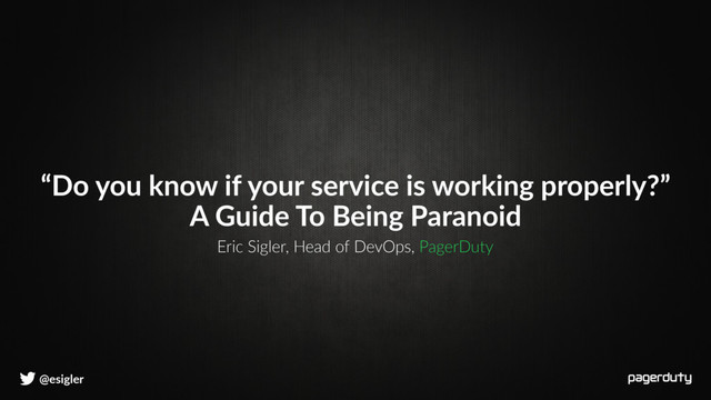 End-to-end monitoring, testing, and validation of an application or service can be helpful to both development and the business if done properly. It lets you answer the age old question "Is $APP up?" with confidence. Especially when individual service-owning teams are part of a larger whole, having a way to rapidly iterate and verify your changes is vital. This talk went over background & history on end-to-end testing efforts, then discuss best practices for care and feeding of such systems, and pitfalls to avoid, with references.