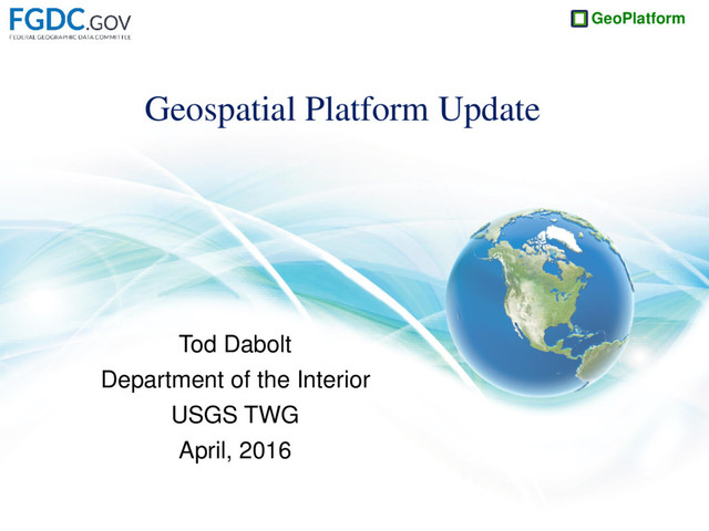 functionality Create and import maps from Esri’s ArcGIS On-Line Create and embed Map Galleries into external sites Portfolio management capabilities to measure and manage national geospatial data assets Enriched geospatial marketplace Secure scalable Amazon Web Service infrastructure 3 Current GeoPlatform