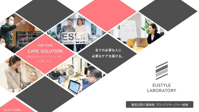 小学1年より始めたサッカーでプロを目指すため高校を中退しイタリアへ渡る。 その後大検を経て、2004年に早稲田大学商学部に入学。 大学卒業後は大手外資系証券会社の株式部門にてトレーディング、投資銀行 部門にてM&Aアドバイザリー業務に従事。 2012年ユースタイルラボラトリー株式会社を設立。 2015年念願の介護福祉士を取得。 未曾有の超高齢化が進行し、社会保障費は激増の一途を辿ります。介護労働人口は伸び悩み、介護難民問題や介護離職問題の 温床となり、解決の糸口さえ見えずにいます。介護事業者の倒産数も毎年のように過去最多を更新し続け、ニーズと供給のバランスは ますます失われ、コミュニティの分断は深まり社会的孤立の果てに数々の悲劇を目撃します。 医療的ケアを必要とする最重度の障害者のニーズは見捨てられ、かねてより国際社会からも批判され続けた社会的入院の問題は 地域ケアの未成熟により放置され、介護労働者の賃金ならびに社会的地位の向上も不十分です。 そんな諸問題を、私たちは、ソーシャルビジネスを通じて解決し続けることを決意しました。 ビジネスの持つ力と速度、スケールメリットとスマートかつシンプルな手法を通じて、社会の片隅、岩盤の裂け目から聞こえてくる ニーズを求める声に応答し続けたい。 やむことなき展開への意思を手放すことなく、未だ出逢わぬ困ってる人たちにサポートの手を送り続けたい。 ケアとテクノロジーの組み合わせにより、イノベーションの振動を業界全体に響き渡らせ、ケアする人たちの豊かさに対する 飽くなき追求を続けたい。 リアルとデジタルの両面でプラットホームを確立し、必然的かつ偶発的出会いの可能性を 信じ続けたい。 社会の最深部に鳴動する喜びや痛みと同期し、私たちの存在理由を探し求め続けたい。 新たなる命が誕生する場所、そこから始まった私たちは自らをアップデートし続け 新たなる出会いと関係性が産声をあげる場所であり続けたい。