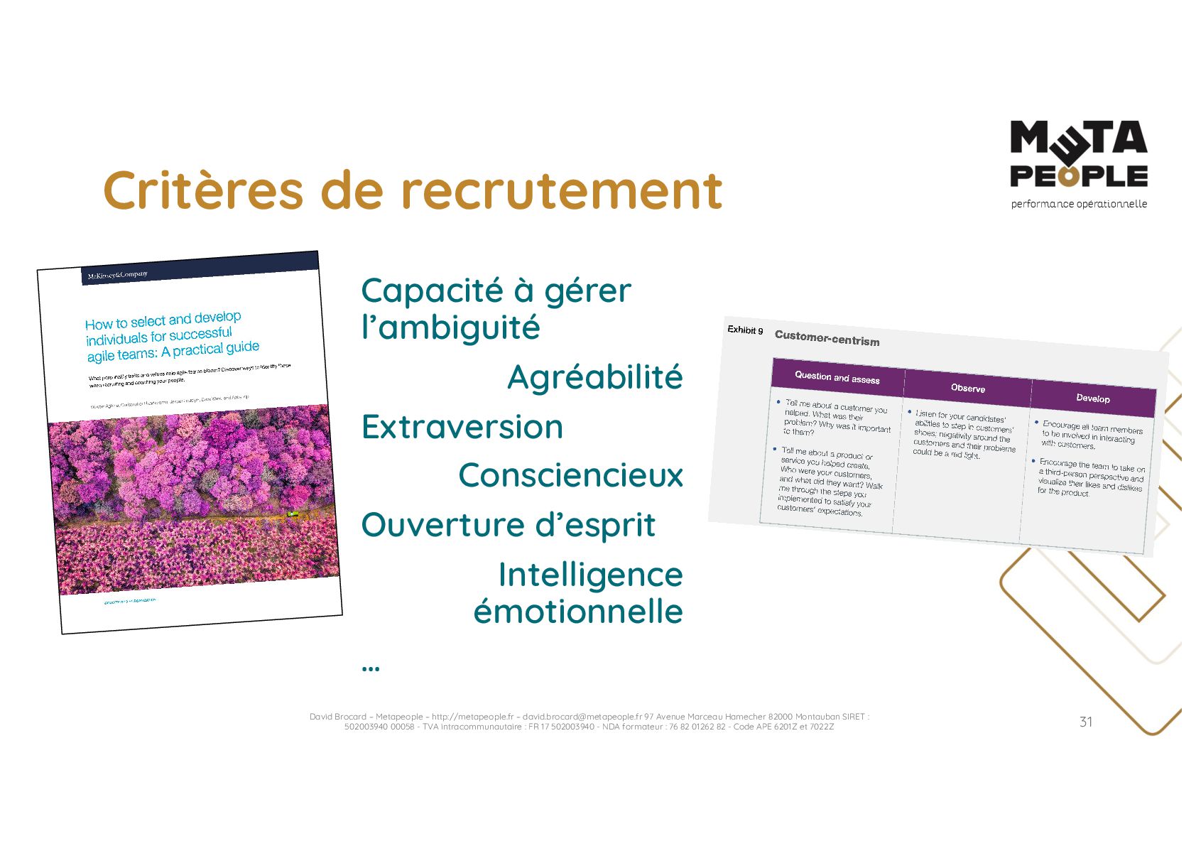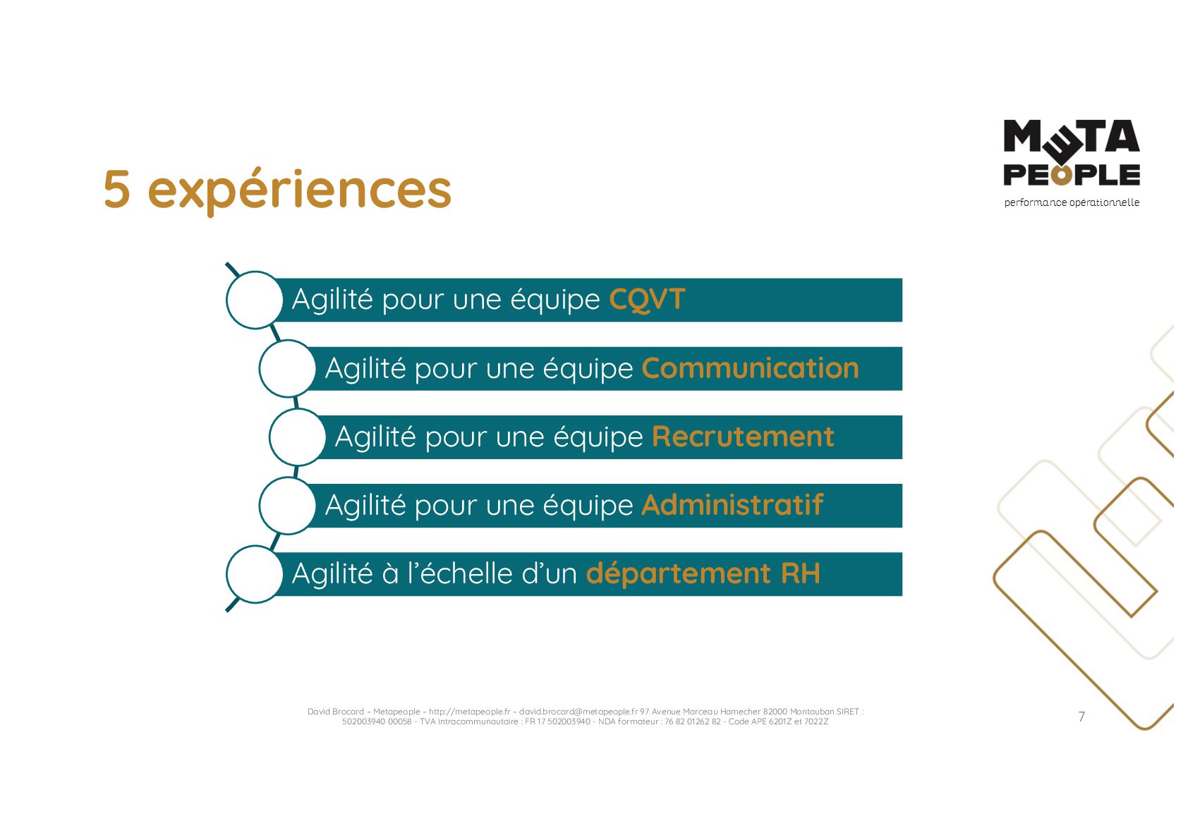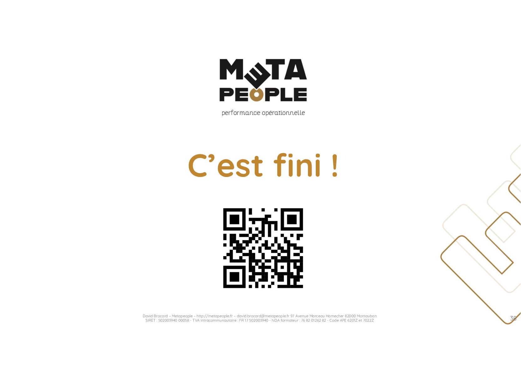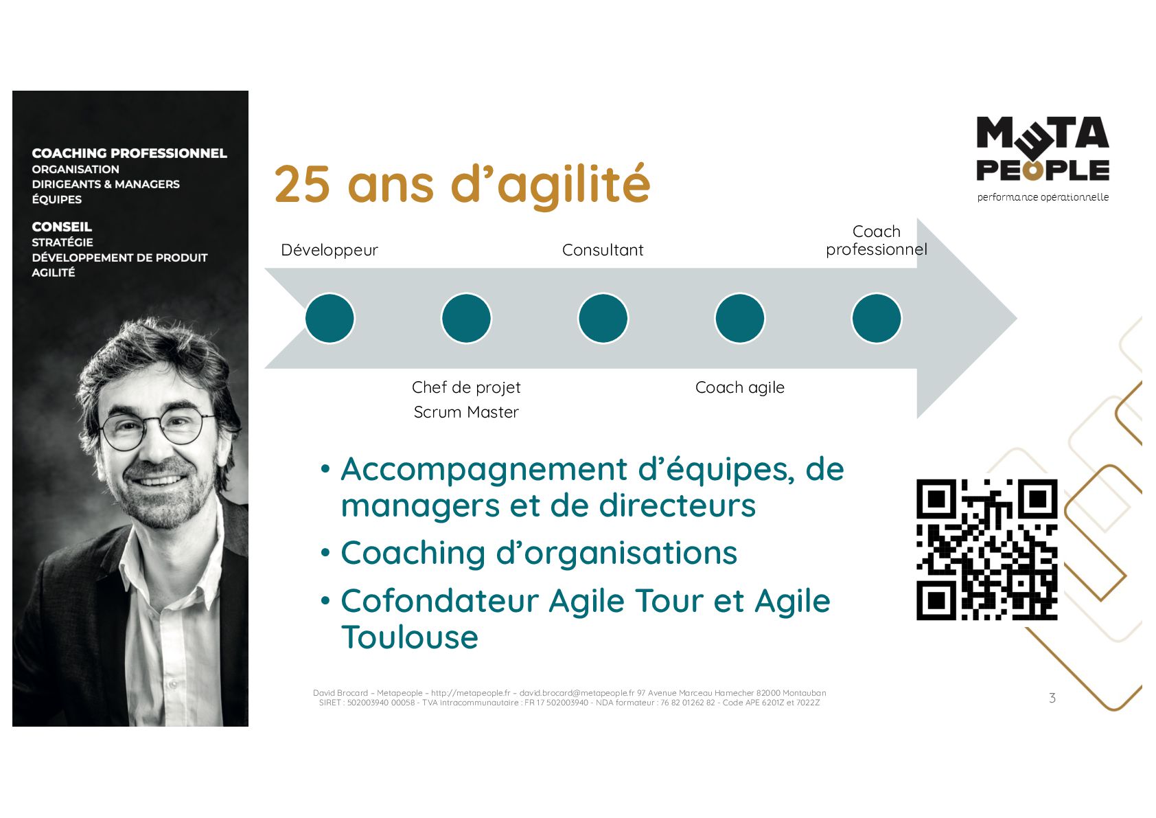 de vraie agilité sans évolution de culture organisationnelle Cf. Présentation ATTLSE2024 « Changer de culture ? » - D. Brocard • Les styles de pratiques RH révèlent la culture Recrutement, interessement, formation, évaluation… • Vers un département des « Relations Humaines » ? David Brocard – Metapeople – http://metapeople.fr –