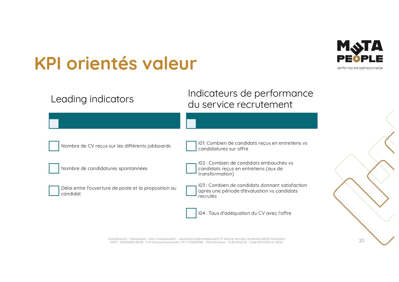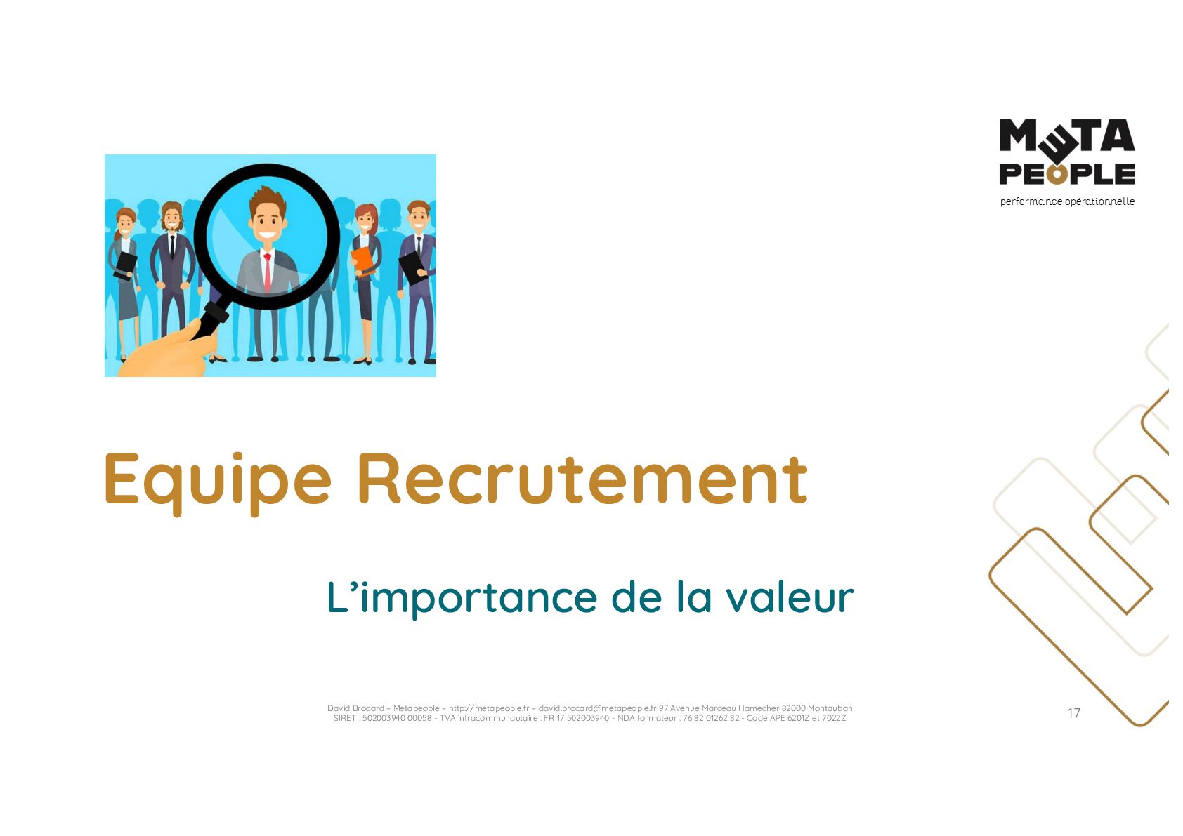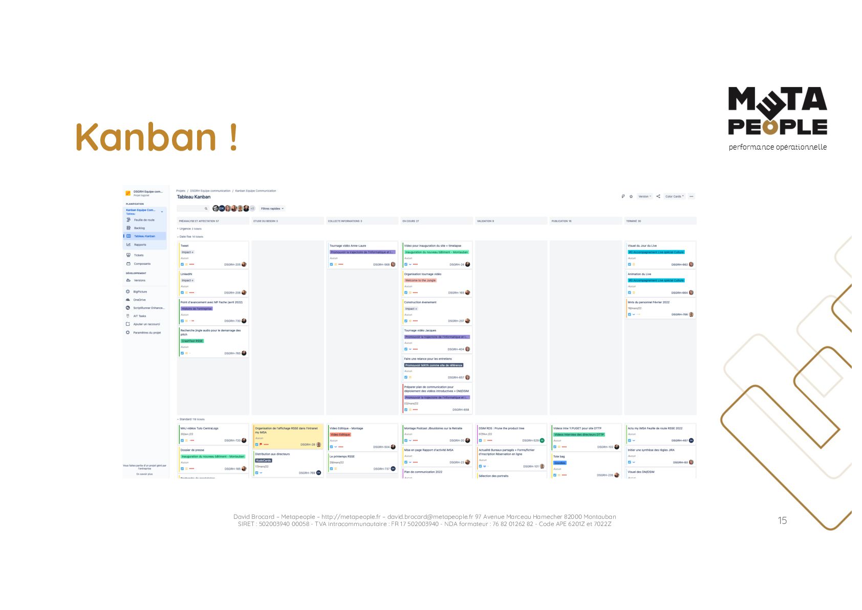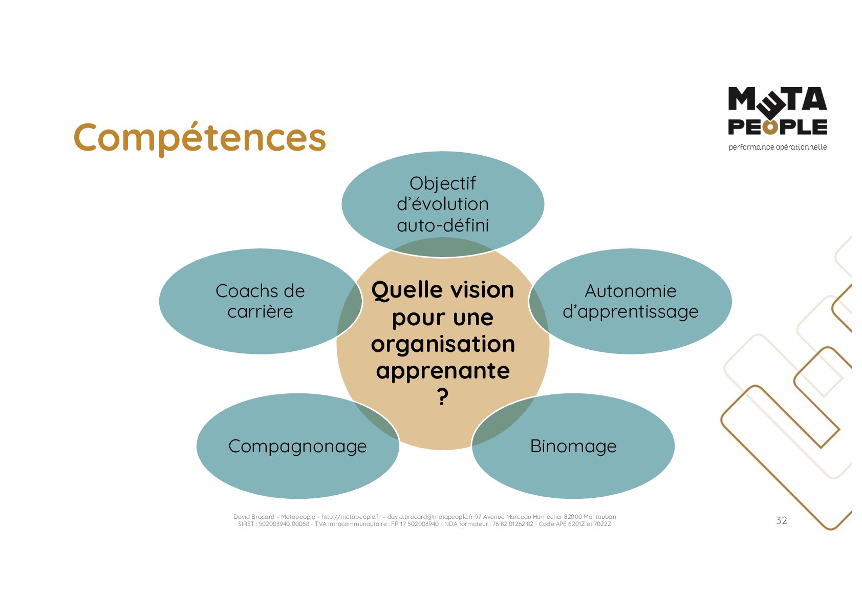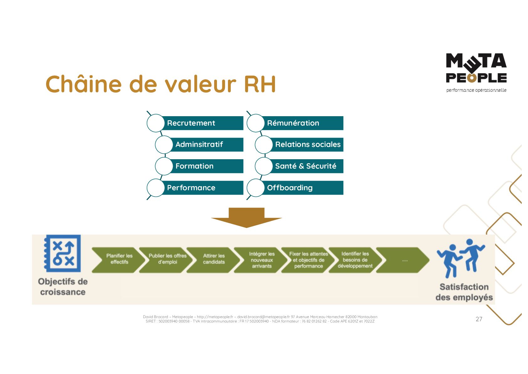 de vraie agilité sans évolution de culture organisationnelle Cf. Présentation ATTLSE2024 « Changer de culture ? » - D. Brocard • Les styles de pratiques RH révèlent la culture Recrutement, interessement, formation, évaluation… • Vers un département des « Relations Humaines » ? David Brocard – Metapeople – http://metapeople.fr –