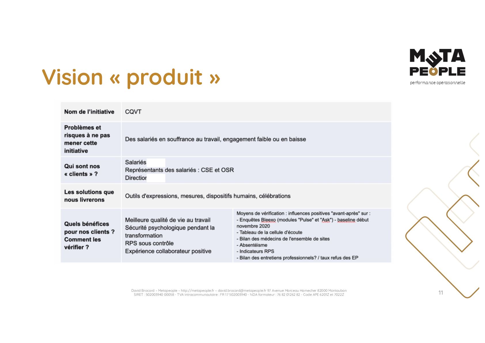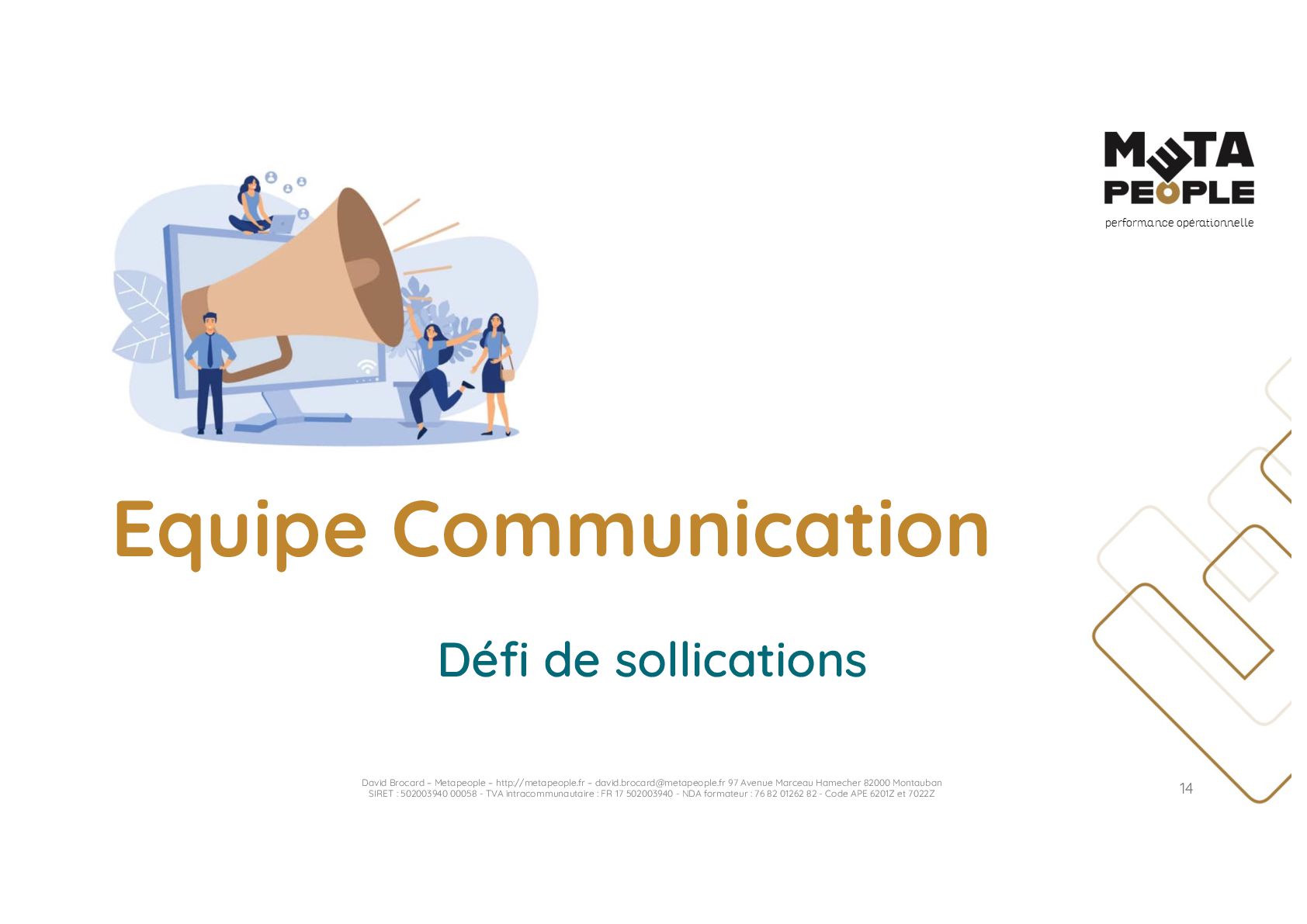 [email protected] 97 Avenue Marceau Hamecher 82000 Montauban SIRET : 502003940 00058 - TVA intracommunautaire : FR 17 502003940 - NDA formateur : 76 82 01262 82 - Code APE 6201Z et 7022Z 35 La carte des 9 Terreaux Culturels® 15 Fluidité Symbiose Uniformité Règlement Management Fédéralisme Individualisme Cloisonnement Centralisme 14% 38% 62% 86% 14% 38% 62% 86% Degré de Collaboration Degré de Formalisation Terreaux Culturels© “Nous sommes dans les premières places du classement Great Place To Work. C’est le résultat de vingt ans de pratiques managériales : autonomie des équipes, formation sur mesure, entretiens mensuels individualisés, applications de valeurs partagées et de confiance »