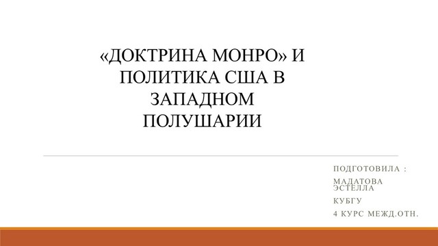 колонизации, принадлежала Дж. К. Адамсу, государственному секретарю в администрации президента Джеймса Монро (1758—1831). Как политическая доктрина она была впервые изложена в июле 1823 г. в форме предупреждения правительству России. Обсуждение действий Испании на юге континента, направленных на восстановление утерянных там ею колоний, было связано с инициативой, проявленной министром иностранных дел Великобритании Дж. Каннин-гом. Он предложил Правительству США выступить с совместным заявлением о «неодобрении» таких шагов со стороны Испании. Хотя американские экс-президенты Т. Джефферсон и Дж. Мэдисон поддержали необходимость такого коллективного демарша, Адаме счел целесообразным сделать заявление от имени лишь Соединенных Штатов, дабы его страна не выглядела «шлюпкой, плетущейся в кильватере британского крейсера». Президент Монро согласился с мнением своего государственного секретаря, но счел более разумным не распространять такое заявление по дипломатическим каналам, а включить его в очередное ежегодное послание президента к Конгрессу Соединенных Штатов, которое было зачитано 2 декабря 1823г.