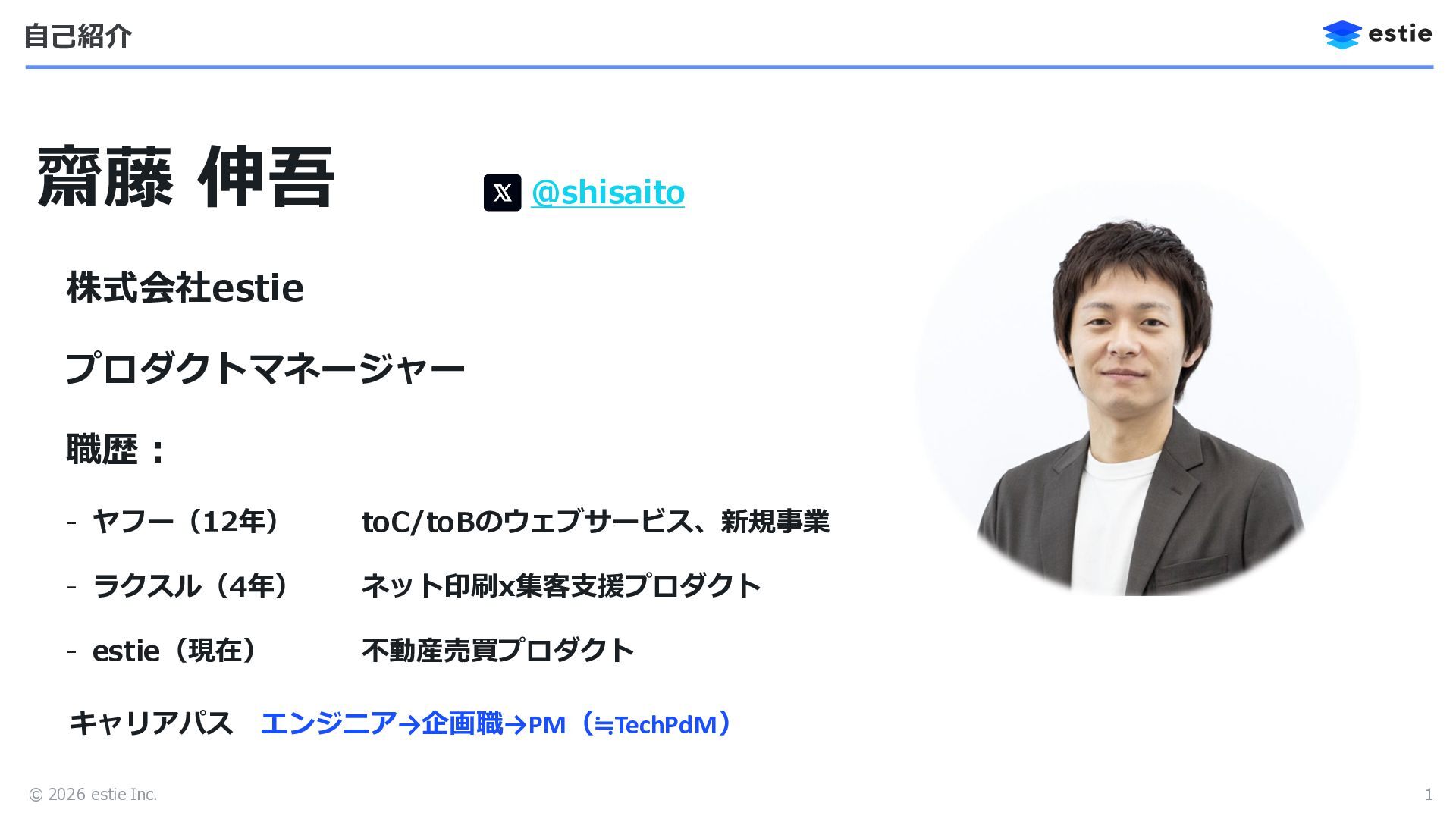 © 2026 estie Inc. 自己紹介 1 齋藤 伸吾 @shisaito 株式会社estie