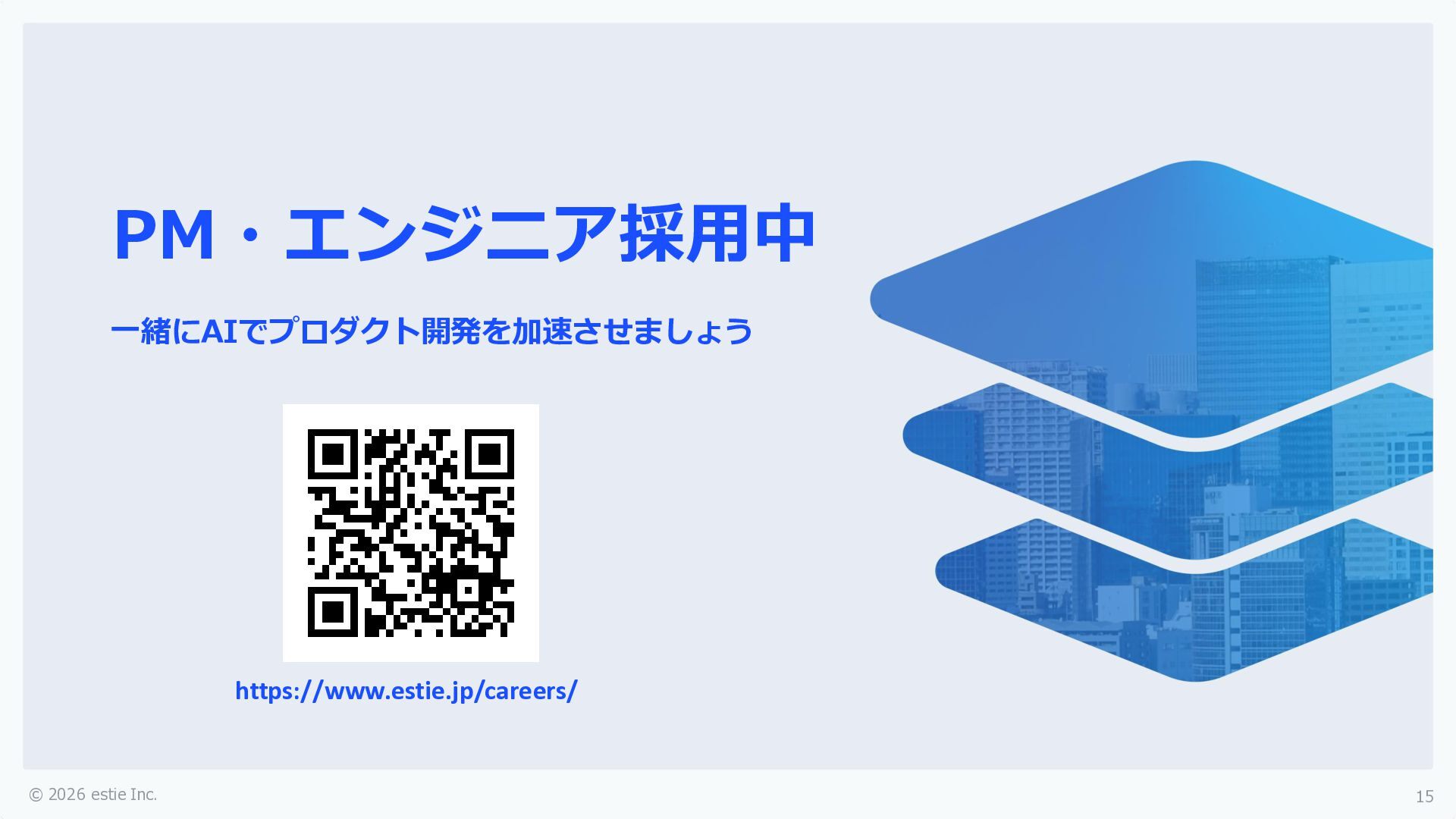 © 2026 estie Inc. 15 PM・エンジニア採用中 一緒にAIでプロダクト開発を加速させましょう https://www.estie.jp/careers/