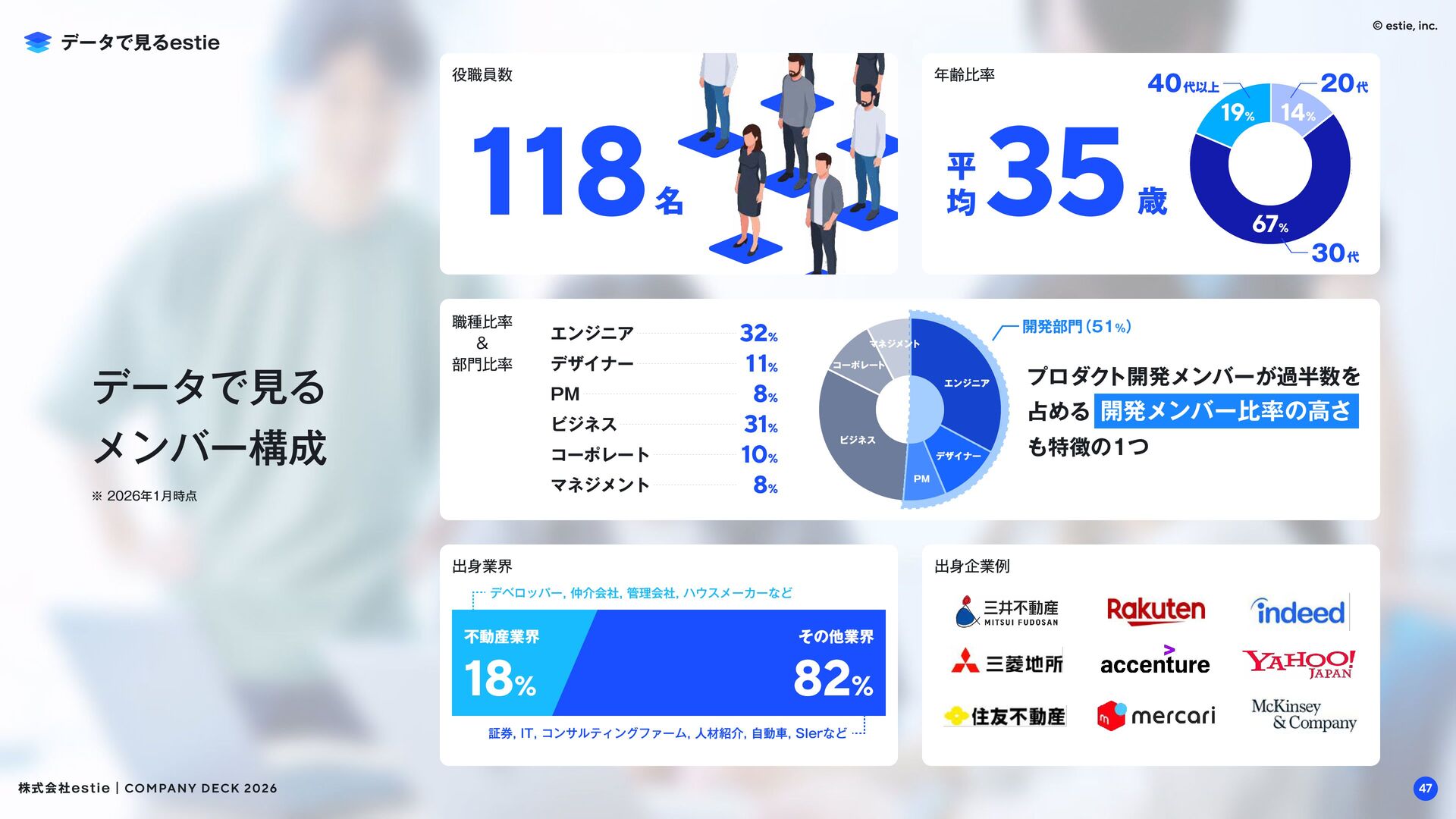 株式会社estie(エスティ)は、積極採用中です! 会社のことをより深く知っていただくために、紹介資料をご用意しました。