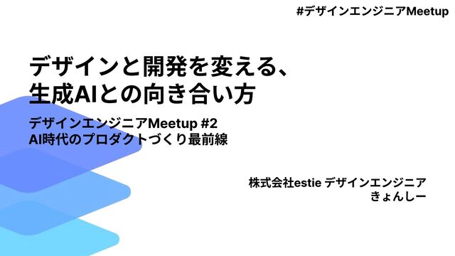 デザインと開発を変える、 生成AIとの向き合い方 デザインエンジニアMeetup #2 AI時代のプロダクトづくり最前線 株式会社estie デザインエンジニア きょんしー #デザインエンジニアMeetup
