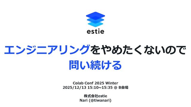 © 2025 estie Inc. エンジニアリングをやめたくないので 問い続ける Colab Conf 2025 Winter