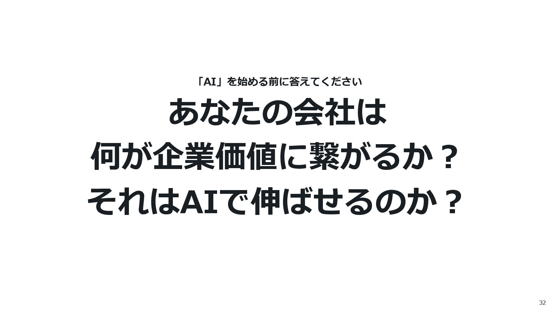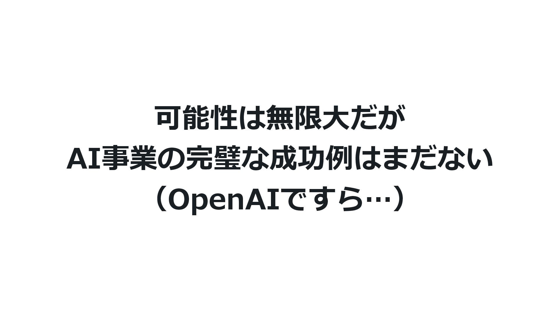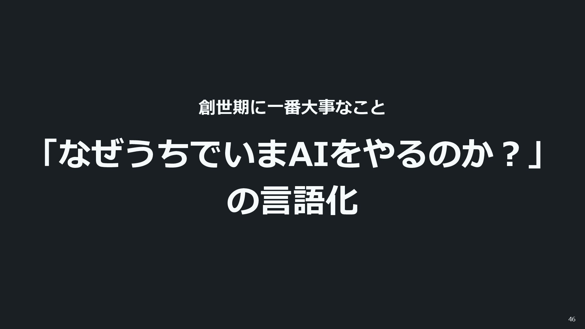 当初は焦りがあった…が、もう「全部賭けろ」はしなくてもいい 「早く成果を出さないと…」という気持ちがあった AIがない世界には我々はもう戻れない ーーー 腰を据えて取り組もう