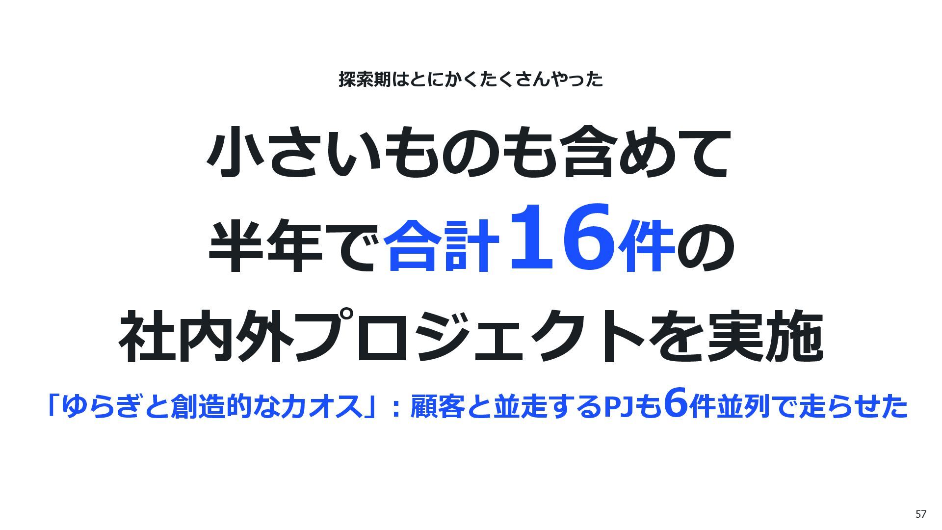 俯瞰期 移⾏期 共同化 S 暗 → 暗 表出化 E 暗 → 形 内⾯化 I 形 → 暗 連結化 C 形 → 形 ⬜ 組織の意図 ⬜ ⾃律性 ⬜ 創造的カオス ⬜ 情報の冗⻑性 ⬜ 最少有効多様性 AI事業創りの試⾏錯誤を知識創造のプロセスで理解して学びとする +