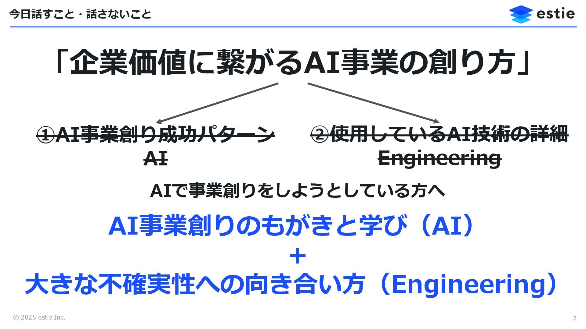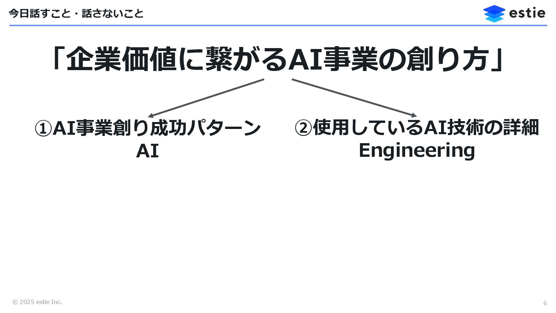 1. © 2025 estie Inc. 企業価値に繋がるAI事業の創り⽅ AI Engineering Summit Tokyo 2025