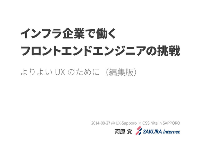 インフラ企業で働く フロントエンドエンジニアの挑戦 河原 覚 2014-09-27 @ UX-Sapporo × CSS Nite