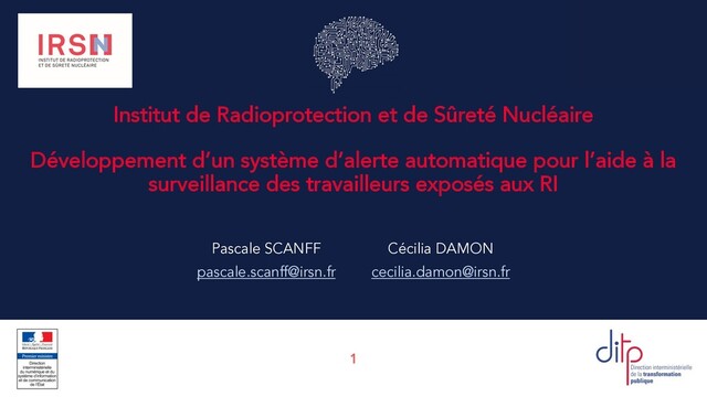 testés par des utilisateurs • Le prototype n’a pas vocation à devenir un outil per se mais les fonctionnalités développées vont être « embarquées » dans la refonte de SISERI, qui vient de débuter • Les outils d’alerte restent encore à peaufiner • Soutien à la compétence interne en datasciences et stimulation de la valorisation des données par l’IA, dynamisation du développement des méthodes de détection automatique d’anomalie dans d’autres jeux (démarrage d’autres projets en parallèle, à l’IRSN) • Objectivation de l’investissement nécessaire pour mener un projet à bien, même quand les données sont au départ déjà bien « propres »!