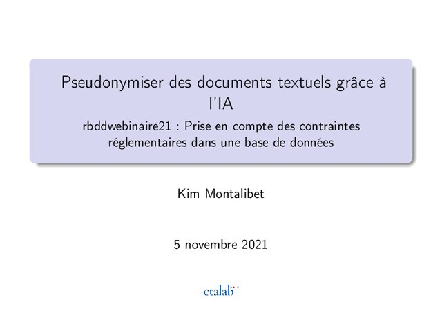 et techniques La pseudonymisation de textes par l’IA Définitions 1/3 Données à caractère personnel : C’est toute information relative à une personne physique susceptible d’être identifiée, directement ou indirectement. Données sensibles : Ce sont les informations qui révèlent la prétendue origine raciale ou ethnique, les opinions politiques, les convictions religieuses ou philosophiques ou l’appartenance syndicale. Ce sont également les données génétiques, les données biométriques aux fins d’identifier une personne physique de manière unique, les données concernant la santé, la vie sexuelle ou l’orientation sexuelle d’une personne physique. Kim Montalibet 8/31