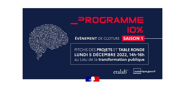 applications et des documents conformes à la charte graphique de l‘État pour faciliter la vie des agents. CARTIFLETTE : ASSOCIER les données géographiques des différents acteurs publics pour faciliter la réalisation de cartes par les administrations, chercheurs, enseignants et médias. SOCRATEXT : EXTRAIRE des informations contenues dans des documents non directement exploitables pour faire gagner du temps aux agents publics. MatchSIRET : REMONTER à l'identifiant exact d'une entreprise à partir d’informations issues du terrain pour faciliter le travail des agents publics. REGARD PUBLIC : Romain Lesur (INSEE), Stéphane Campion (Pôle Emploi), Sophie Ravel (DINUM) REGARD ASSOCIATIF : Théo Alves Da Costa (Data For Good) REGARD INTERNATIONAL : Antoine Augusti (Retex Service numérique du Canada) Pitchs des projets 10% : des solutions à 4 problématiques concrètes ! Table ronde : Comment attirer et fidéliser les talents de la data au sein de l’État ? 14h00-15h00 15h00-16h00 16h00 : Pot final au rez-de-chaussée du Lieu