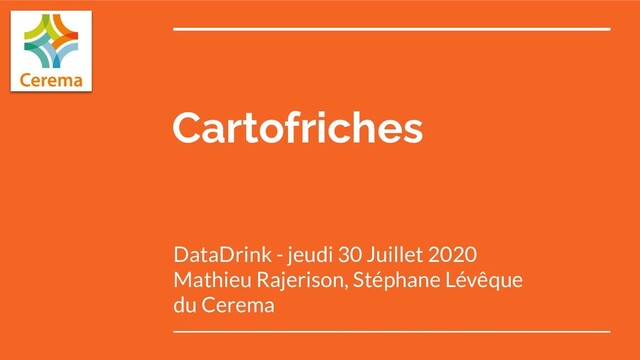 et Emmanuelle Wargon, en présence de la directrice de la DGALN, du DG du Cerema, et des cabinets. 8 Janvier Réunion de co-construction organisée par la DGALN avec EPF Normandie, Nord Pas de Calais et EPORA 15 & 16 Janvier Hackathon interne Cerema du GT Friches 2020 Mi-Février Conseil de Défense Écologique 7 Novembre CDE La réhabilitation des friches comme levier primordial pour lutter contre l’artificialisation des sols