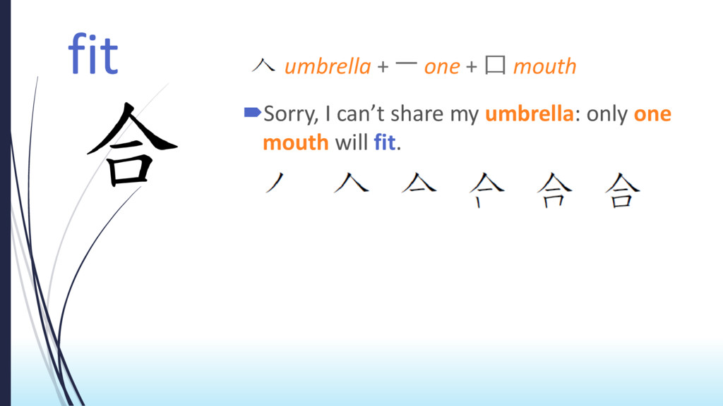 fit umbrella + 一 one + 口 mouth Sorry, I