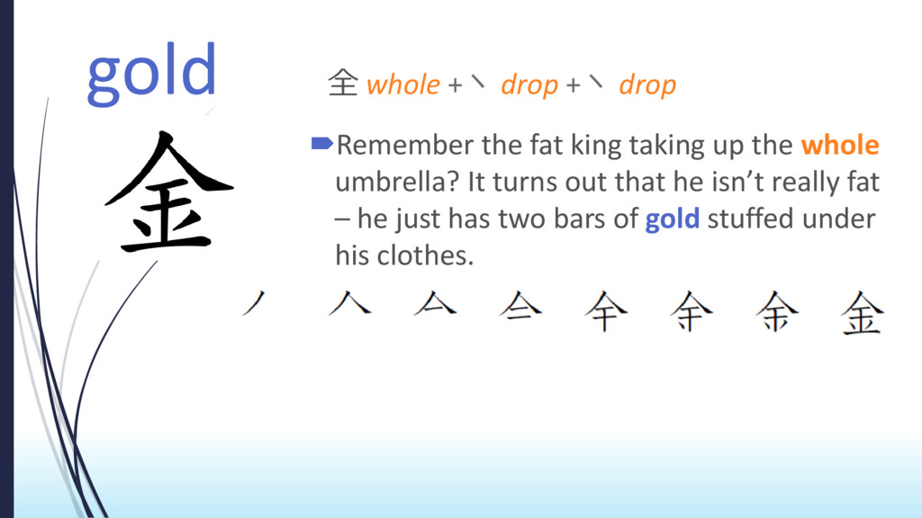 king taking up the whole umbrella? It turns out that he isn’t really fat – he just has two bars of gold stuffed under his clothes.