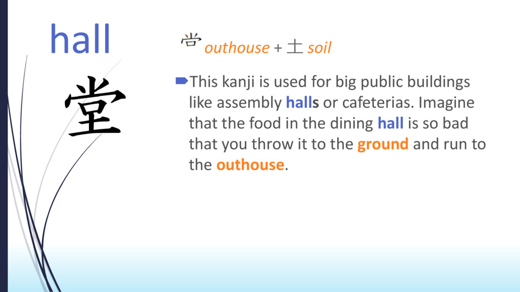 big public buildings like assembly halls or cafeterias. Imagine that the food in the dining hall is so bad that you throw it to the ground and run to the outhouse.