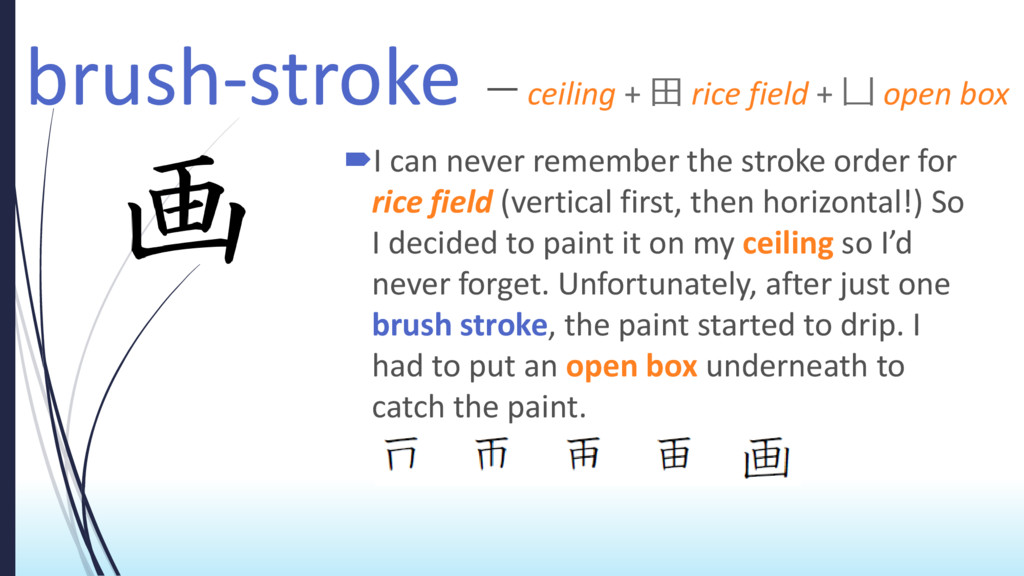 box I can never remember the stroke order for rice field (vertical first, then horizontal!) So I decided to paint it on my ceiling so I’d never forget. Unfortunately, after just one brush stroke, the paint started to drip. I had to put an open box underneath to catch the paint.
