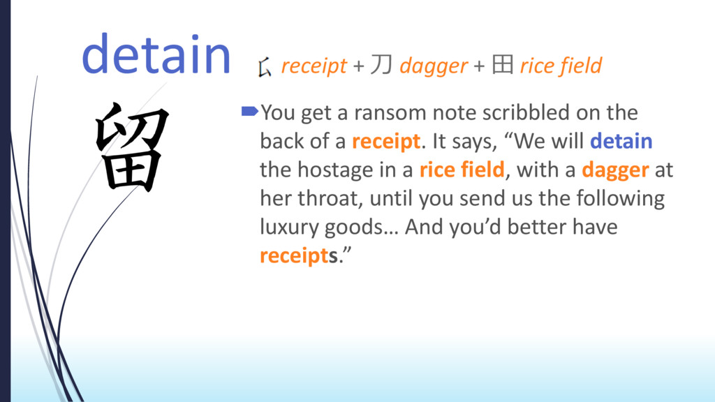 get a ransom note scribbled on the back of a receipt. It says, “We will detain the hostage in a rice field, with a dagger at her throat, until you send us the following luxury goods… And you’d better have receipts.”