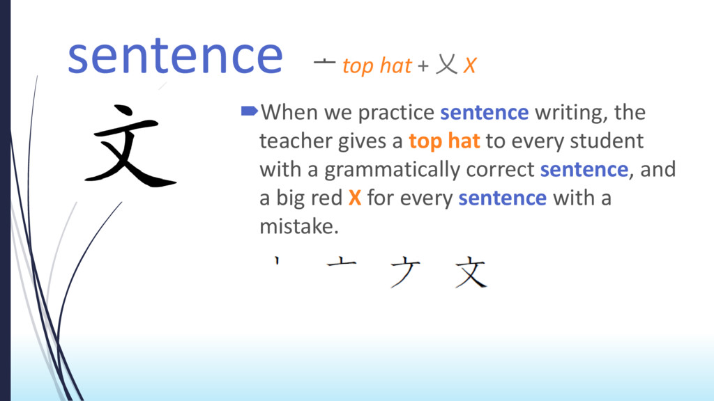 sentence writing, the teacher gives a top hat to every student with a grammatically correct sentence, and a big red X for every sentence with a mistake.