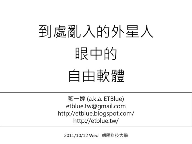 到處亂入的外星人 眼中的 自由軟體 去一些比較 先進的地方 看看 ...