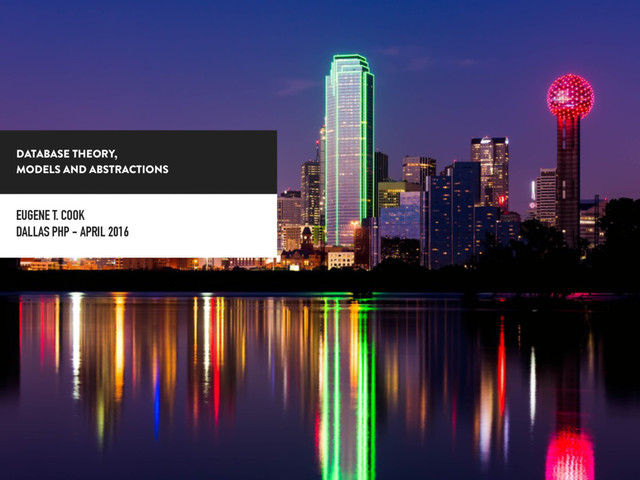 In this talk we'll cover: Table relationships and relationship tables Database Normalization with a focus on Third Normal Form (3NF) Database Indexes and Use Cases Database Keys and Composite Keys Database Optimization. The difference between schema and schema-less databases, and finding the proper database to suit your requirements.