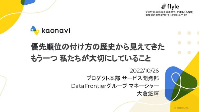 © kaonavi, inc. 優先順位の付け方の歴史から見えてきた もう一つ 私たちが大切にしていること 2022/10/26 プロダクト本部 サービス開発部 DataFrontierグループ