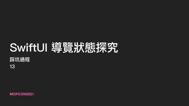 SwiftUI 是用 state 來管理 view。只要 state 改變了, view 就跟著改變。但是傳統 iOS app 操作常見的畫面切換,如 navigation push 與 presentation,原生 SwiftUI 的作法比較陽春,或者可以說是沿用了 UIViewController 的結構。本題想探究 SwiftUI 能否比較簡便的 state 來統一管理 view 的 navigation 與 presentation。