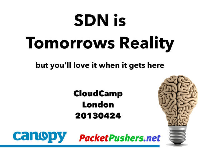 moves networking services into the “vSwitch” - process disruption • Build an OVERLAY Network - design disruption • Network & Server integrated - organisational disruption • Technology will take 2 years to mature 12